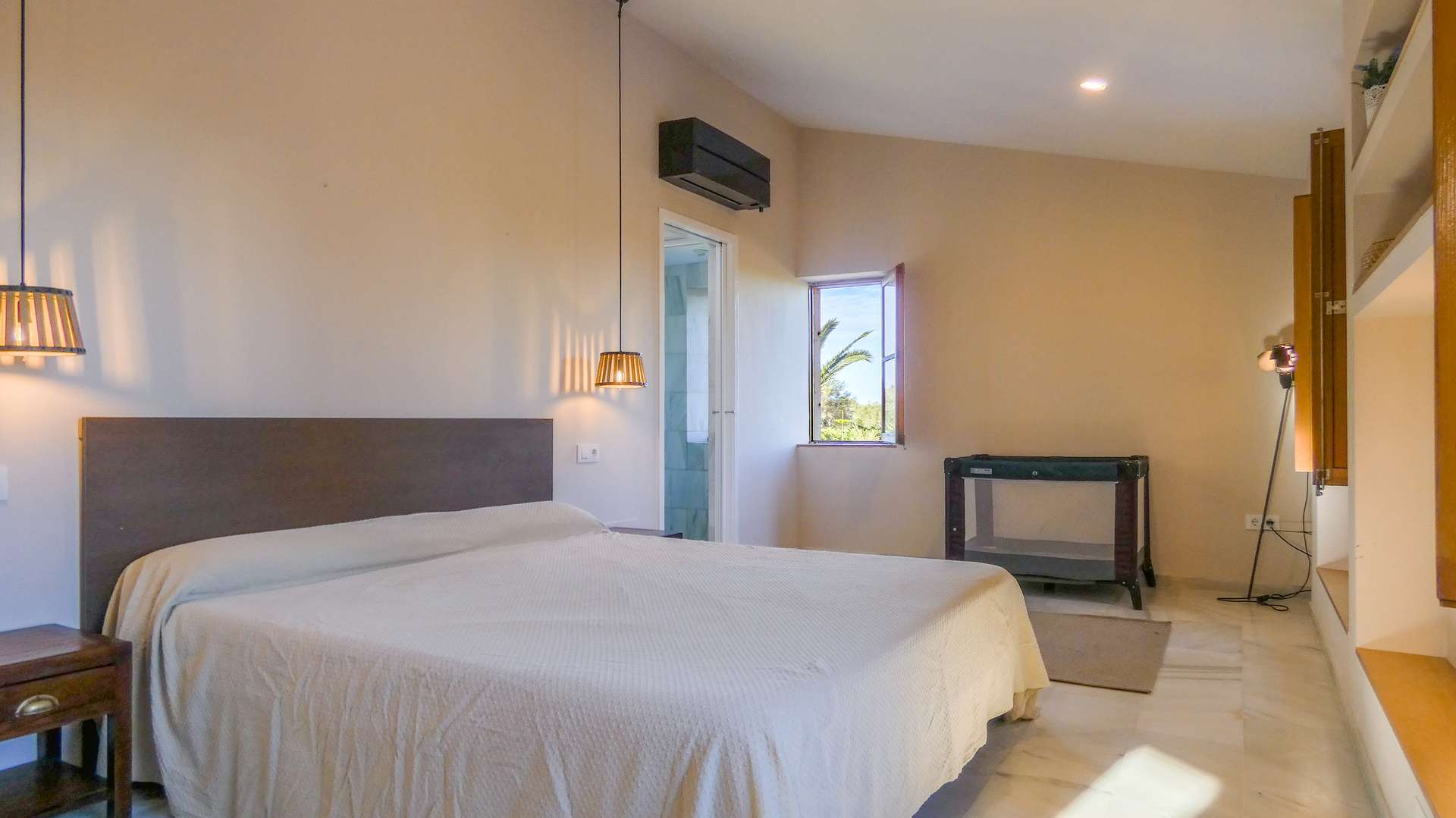 La villa se encuentra en una zona tranquila cerca del municipio de Ses Salines, a solo 10 minutos a pie del centro del pueblo, donde se pueden encontrar restaurantes, supermercados y comercios locales. Su ubicación permite combinar descanso y privacidad con la cercanía a algunas de las playas más bonitas de Mallorca, como Es Trenc, a pocos minutos en coche.