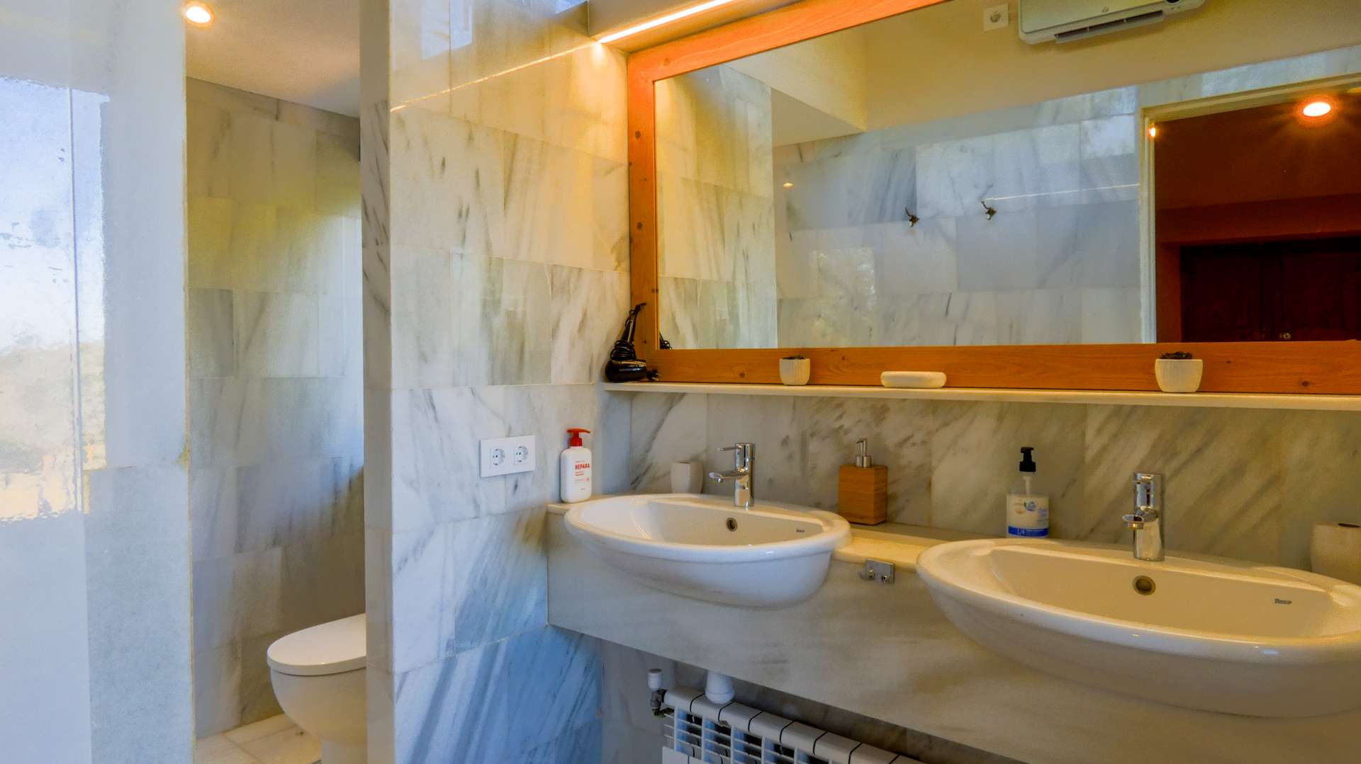 El alojamiento dispone de cuatro habitaciones exteriores, tranquilas y acogedoras, además de tres baños completos. Todas las estancias son luminosas y cuentan con vistas abiertas al entorno natural que rodea la villa.